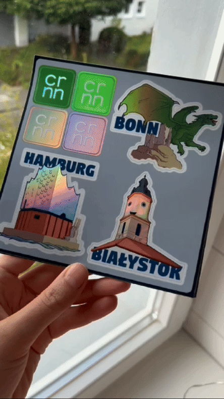cronn GmbH is a German software development company. While their HQ is located in Bonn, they also have offices in Hamburg and Białystok (Poland). These three locations formed the basis for the design of a set of holographic stickers which were included in the giveaway package for their 10th anniversary celebrations.